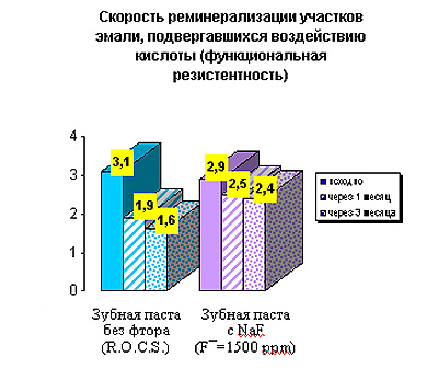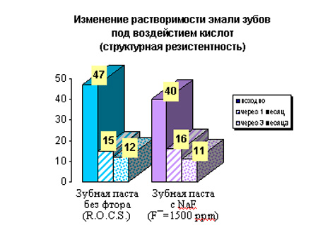 - Зубная паста R.O.C.S., содержащая источники кальция, фосфата и магния, не содержащая фтор, позволяет повысить кариесрезистентность зубов не менее эффективно, чем зубная паста, содержащая фторид натрия в максимальных концентрациях (F = 1500 ppm).