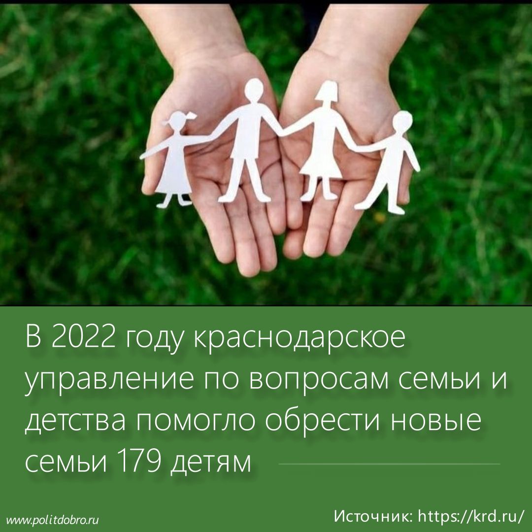 В 2022 году краснодарское управление по вопросам семьи и детства помогло обрести новые семьи 179 детям
