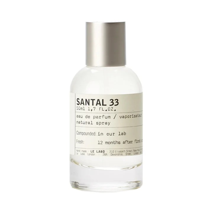 Созданный известным парфюмером Фрэнком Фольклем, Le Labo Santal 33 — это унисекс аромат. Фантазия о мужчине в кожаном седле в пустыне была вдохновением для этого насыщенного древесного аромата. В его трех нотах есть аккорд фиалки, кардамон, ирис, амброкс, кедр, кожа и австралийский сандал. Продукты Le Labo отличаются своей аптечной упаковкой, где этикетки выглядят так же, как на флаконах в магазинах традиционной медицины и семейных аптеках.